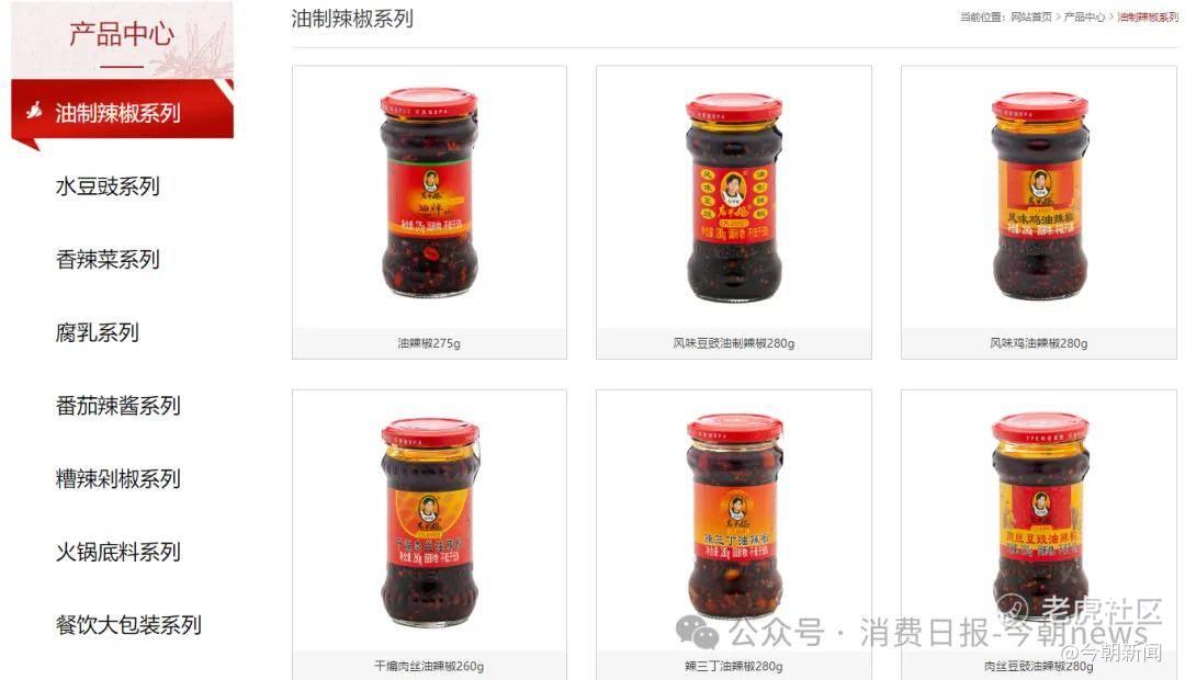 老干妈官网显示,公司目前共有包括火锅底料、红油腐乳、香辣菜在内的共计十几种产品。