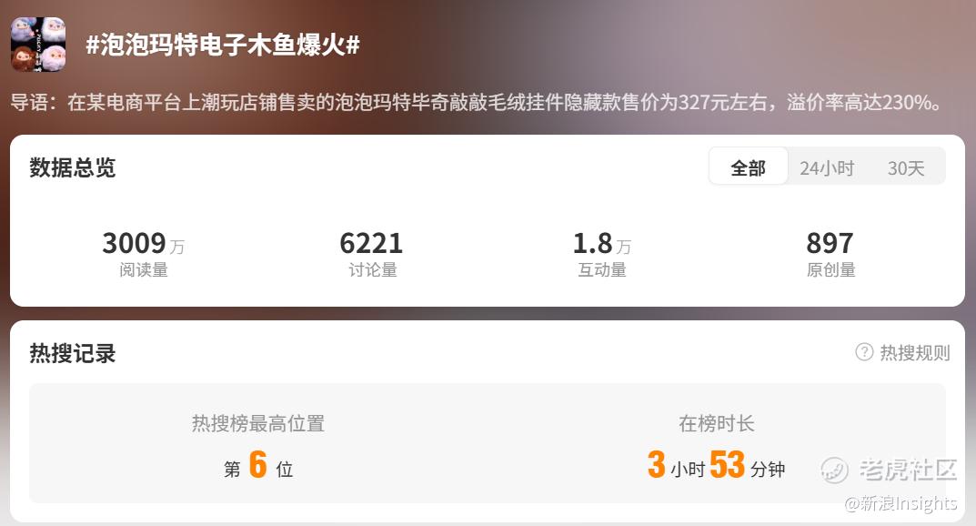 “电子木鱼”的热度也延伸至资本市场。1月23日,“泡泡玛特电子木鱼爆火”话题登上微博热搜当日,泡泡玛特股票上涨6.60%,收盘价达219.6港元/股。此后,泡泡玛特股价也延续涨势,截至1月29日午间已升至231.6港元/股。