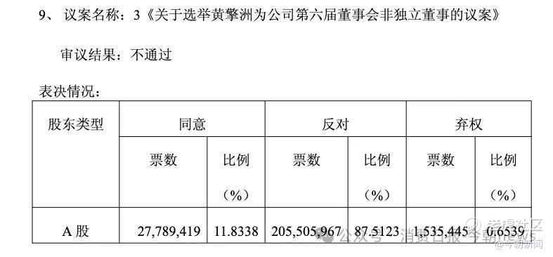 这一操作直接导致该议案适用非累积投票制,在这种规则下,最终黄擎洲仅获11.83%同意票,提名失败。杭州中易坤对此强烈质疑,认为公司程序不合理,此举是刻意削弱中小股东话语权。