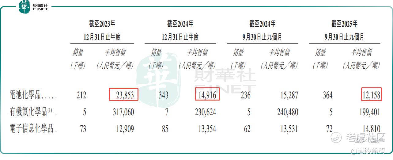 而电池化学品的毛利率下滑在很大程度上也和平均售价持续下降有关,从2023年的2.385万元/吨,已经降到了2025年前三季度的1.216万元/吨,降幅巨大,而销量则是在持续增长。