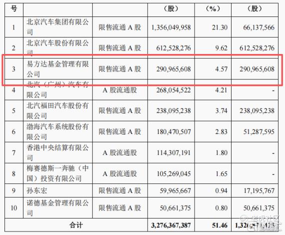 北汽蓝谷60亿定增尘埃落地!11家机构获配,但仅易方达一家就投了22亿,持股比例达4.57%,一跃成为北汽集团之后第二大股东。