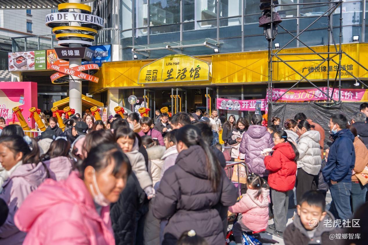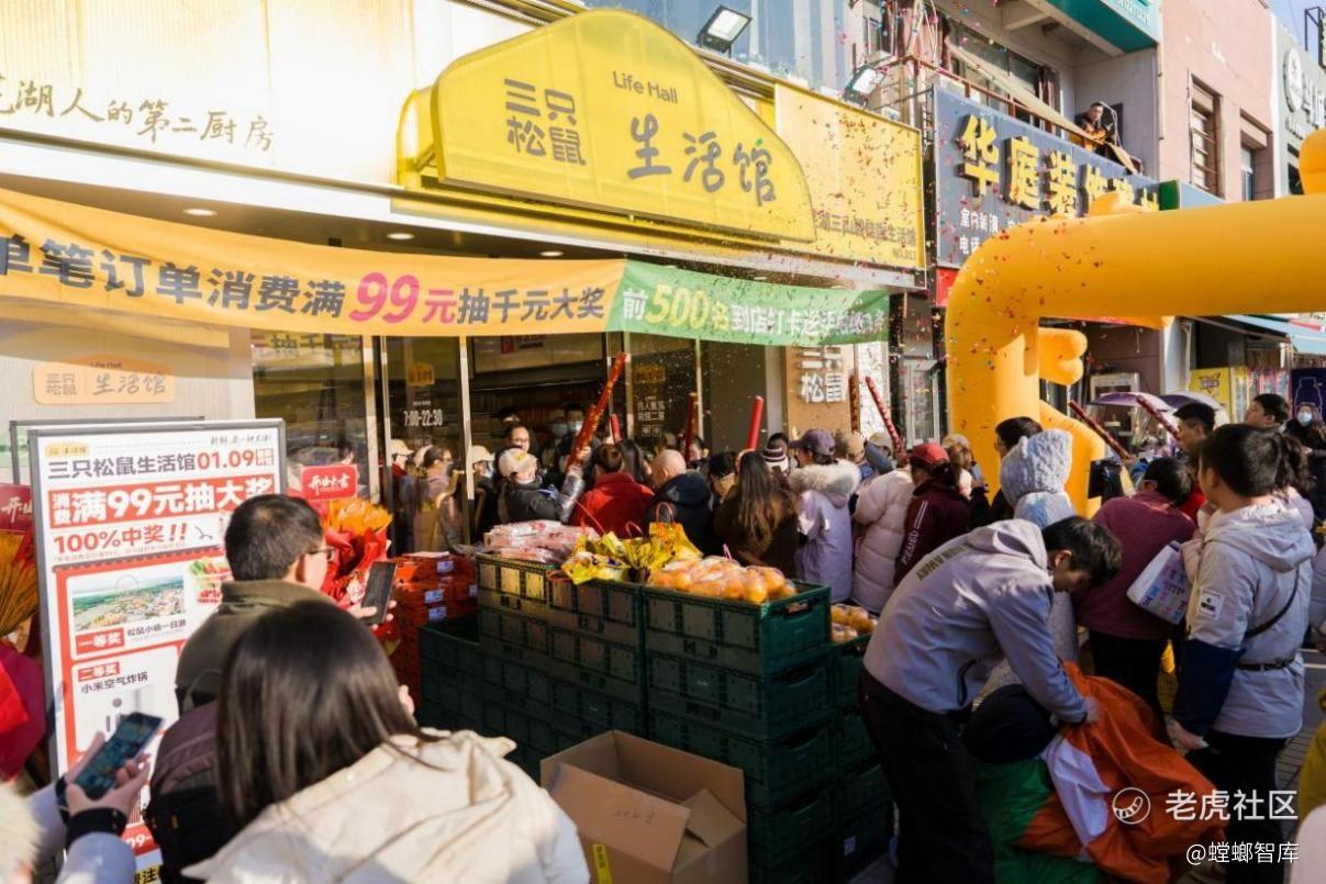 凭借差异化竞争优势,三只松鼠生活馆蕴藏巨大市场潜力:2025年6月,首个生活馆样板店落地,开业三天销售额突破100万;11月,首个旗舰店芜湖金鹰生活馆开业,三天销售额再破126万,辐射周边2.4万个家庭。截至2026年1月30日,三只松鼠生活馆已在皖苏两省核心区域累计布局22家门店,涵盖1家旗舰店、15家标准店、6家mini店,呈现高密度渗透态势。