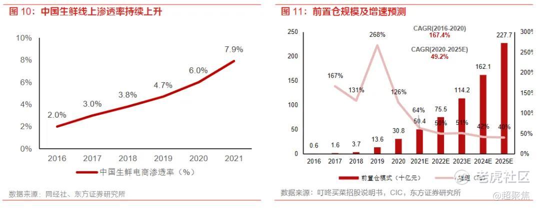 根据CIC预测2025年前置仓市场规模有望达到2277亿元,2020-2025E行业增长CAGR预计达49.2%。