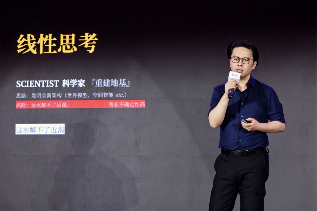 徐俊峰指出,当前AI产业正面临瓶颈:To B端因容错率极低而难以规模化,To C端则尚未跑通商业闭环。这导致像世界模型、物理AI这类宏大的基础架构,虽有远景却“远水难解近渴”。他认为,创业者不应陷入线性思考的死胡同,而应尝试将复杂难题降维转化,寻找能让用户在“无感”中参与强化学习的真实场景。