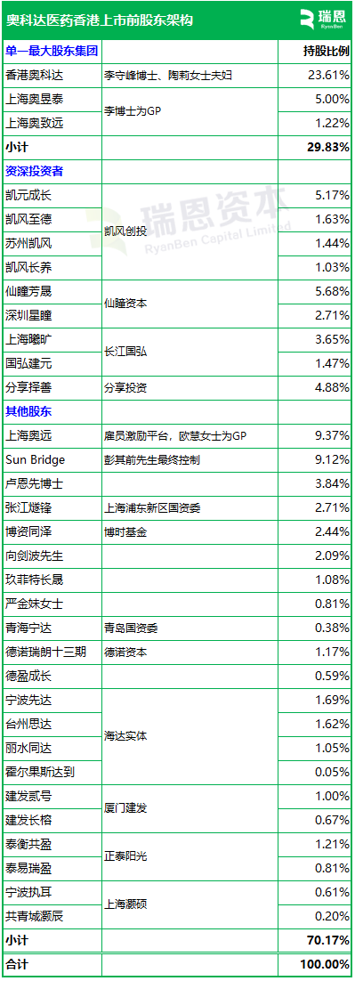根据招股书披露,奥科达医药在香港上市前的股权架构中,