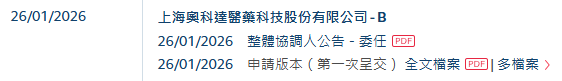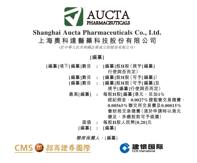 2026年1月26日,来自上海浦东新区的上海奥科达医药科技股份有限公司Shanghai Aucta Pharmaceuticals Co., Ltd.(以下简称"奥科达医药")在港交所递交招股书,拟香港主板IPO上市。