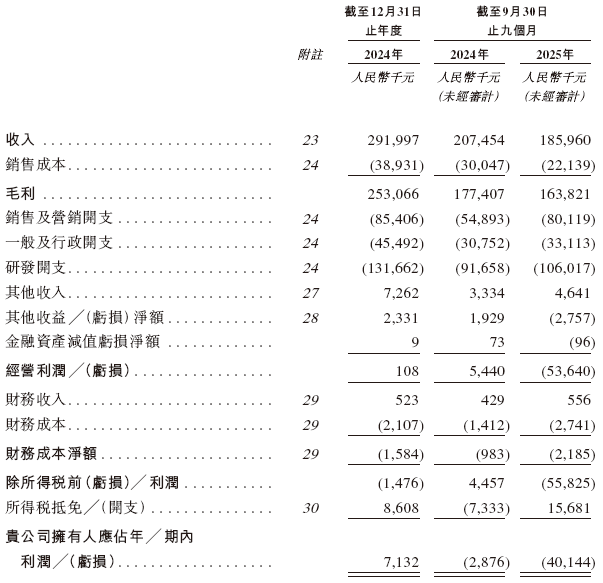 招股书显示,在过去的2024年和2025年前九个月,奥科达医药的营业收入分别为人民币2.92亿和1.86亿元,相应的净利润分别为人民币713.2万和-4,014.4万元。