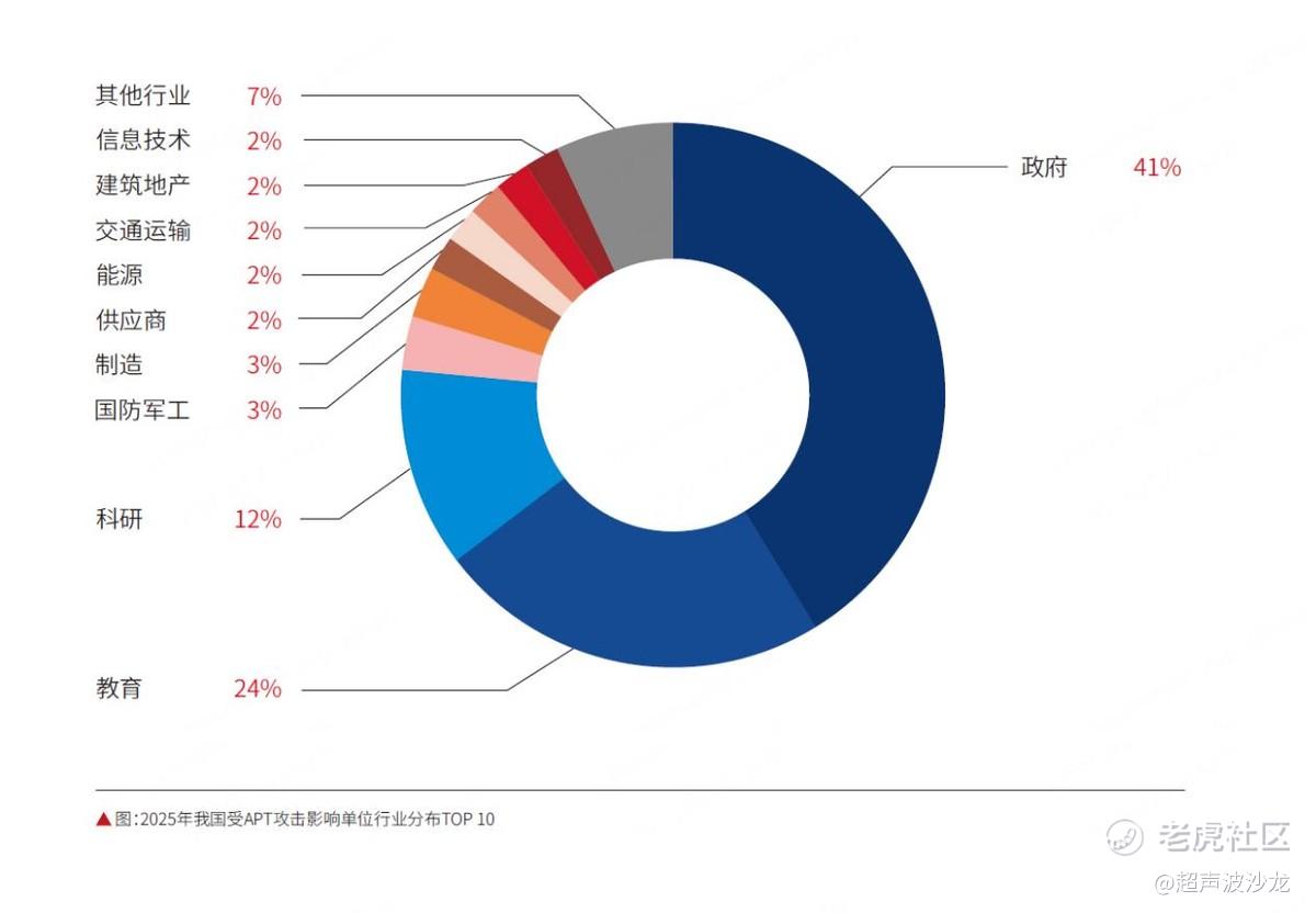 我国作为地缘热点,历来是APT攻击重点目标。2025年,360累计监测到1300余起针对我国的APT攻击,攻击主要来自南亚、东南亚、东亚及北美,覆盖政府、教育、科研、国防军工等15个关键行业,其中政府、教育、科研领域占比超七成。