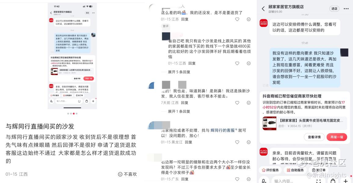 质疑随之而来。据南方都市报报道,有家居行业人士指出,3500元售价扣除平台费用、主播佣金、物流成本及品牌利润后,留给生产环节的预算已极为有限。随后,外界传出顾家家居在广东、四川等地紧急寻找代工厂承接海量订单的消息,加剧了“代工而非自制”的质疑。同时,这也引发了不少消费者的不满。