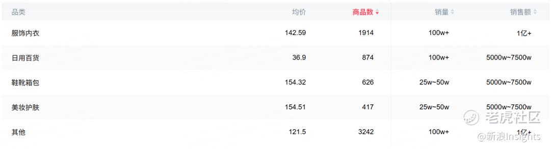 (兰知春序带货品类均价,图源:达多多)
