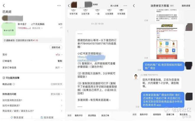 “可以说我有点图便宜,但之前这么买都没问题,这是第一次被骗。”他在小红书看到一个标价4元的“网盘一天会员”购买链接,点击后价格自动变为0.01元。他以为是平台优惠,便付了款。随后客服发来一份“会员领取教程”。
