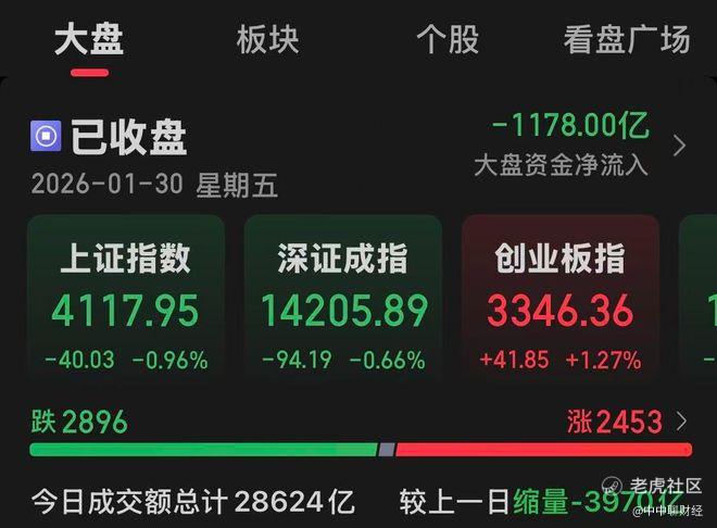 旅游及酒店板块亦表现活跃,受益于国务院近期印发的《加快培育服务消费新增长点工作方案》。政策明确加大对服务消费领域的金融支持,提振市场对文旅、影视等线下消费场景复苏的信心。煤炭板块则因季节性能源需求支撑而小幅走强。 权重板块普遍承压,成为拖累大盘的主要因素。贵金属板块遭遇重挫,主因国际黄金、白银价格大幅回调,导致黄金股集体跌停,严重压制市场风险偏好。有色金属、油气开采、房地产等传统周期板块同步走弱,进一步加剧了主板指数的调整压力。证券板块亦未能延续前期反弹,反映出市场对金融股短期缺乏增量催化。 值得注意的是,尽管指数表现分化,但市场热点集中度提升,资金明显向具备产业趋势或价格弹性的方向聚集。主力资金净流入前三名均为科技类板块,凸显当前资金偏好正从防御转向进攻,尤其聚焦于AI算力、数据要素等新质生产力领域。 总体来看,短期虽有缩量调整,但结构性机会依然丰富。随着美联储降息预期升温、国内稳增长政策持续发力,以及年报业绩预告逐步落地,市场有望在科技与内需双主线驱动下,逐步形成新的平衡格局。