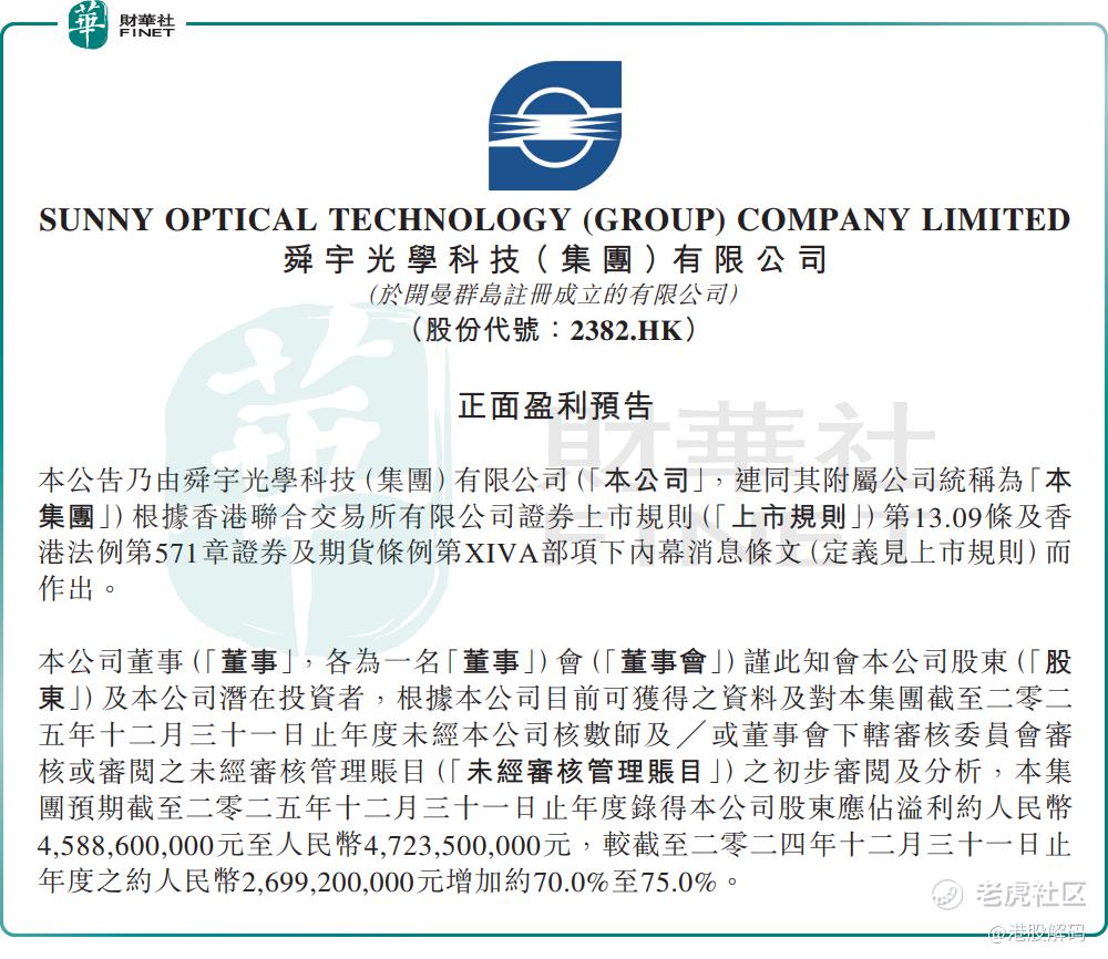 1月29日,果链龙头 $舜宇光学科技(02382)$ 发布2025年正面盈利预告,表现超市场预期。