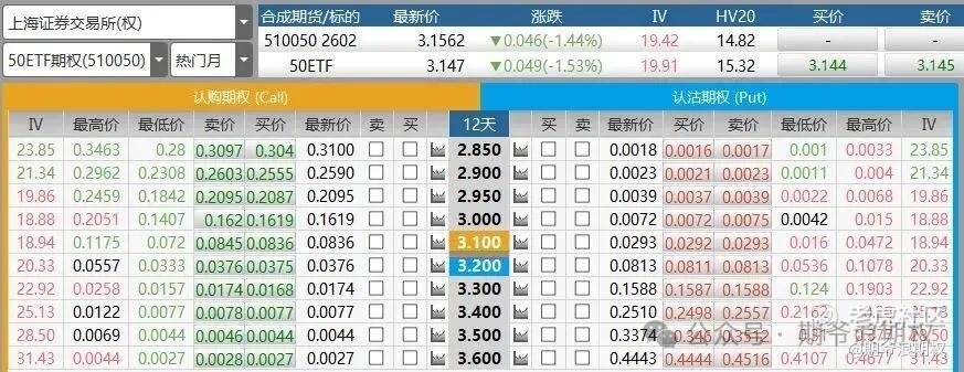 为什么很策略学的时候感觉学会了,但做的时候又有点混乱?任何问题,想要理清思路,只有结合实盘数据才能理清思路。下图是50ETF今天收市行情,我们就以今天的实盘数据为基准,回答以上两个问题。