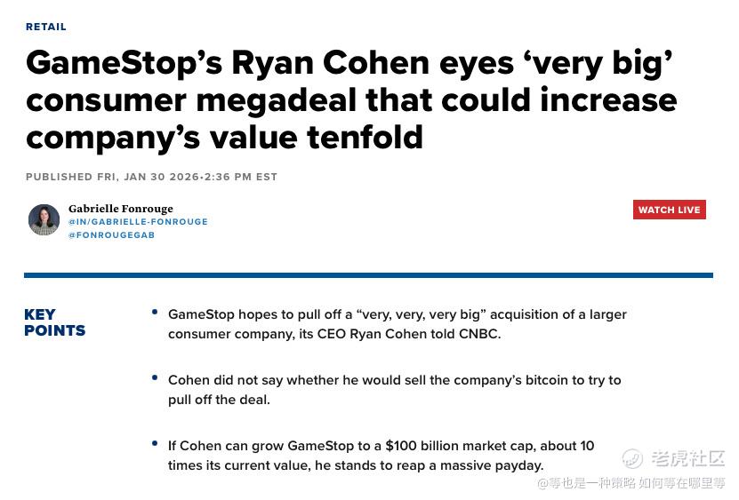 GameStop $GME首席执行官 Ryan Cohen 表示,该公司正在考虑进行一项“非常、非常、非常大的”收购。