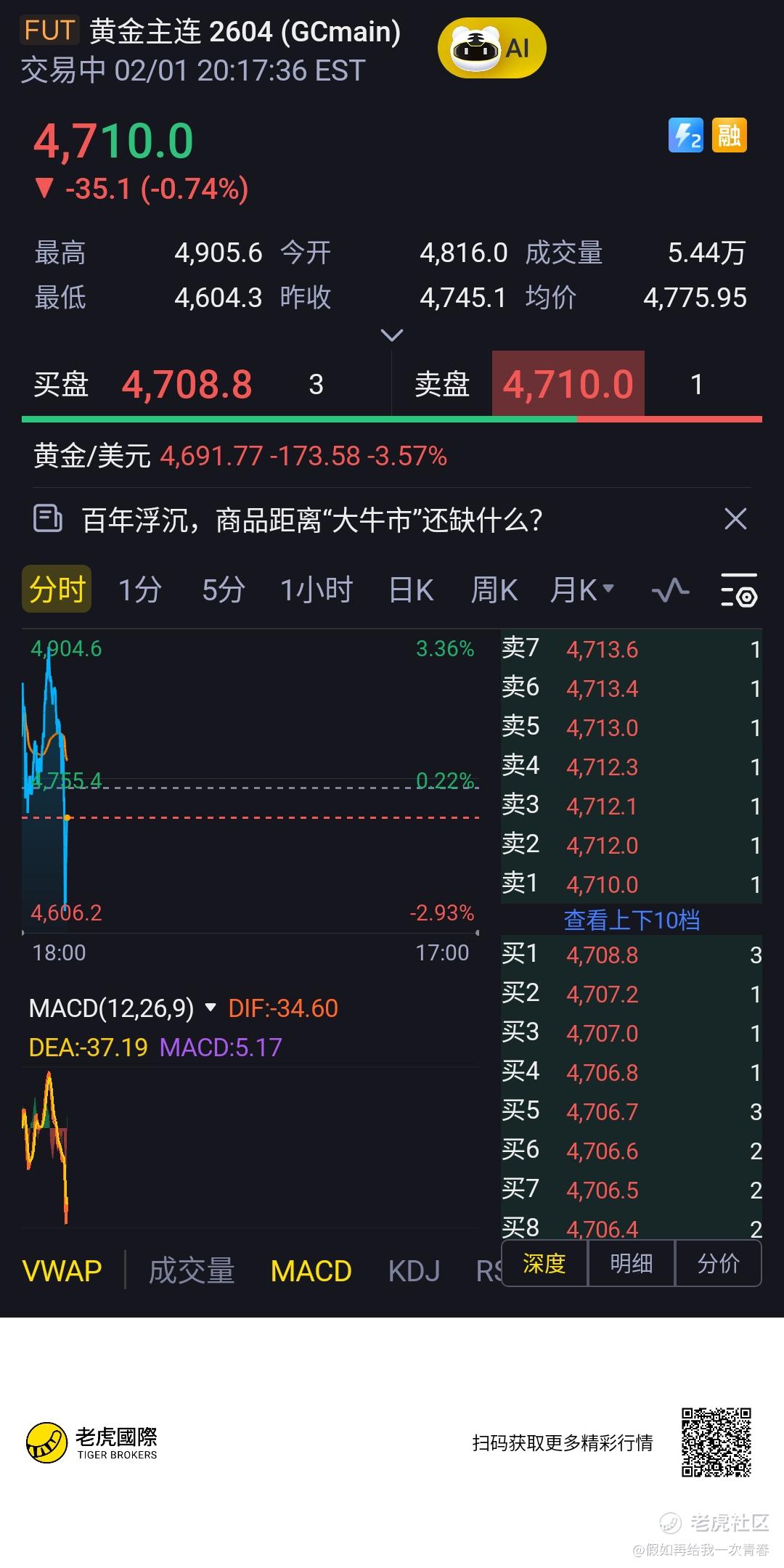 $黄金主连 2604(GCmain)$ 亚洲的韭菜们割肉了,开始暴力反弹!🚀🚀🚀