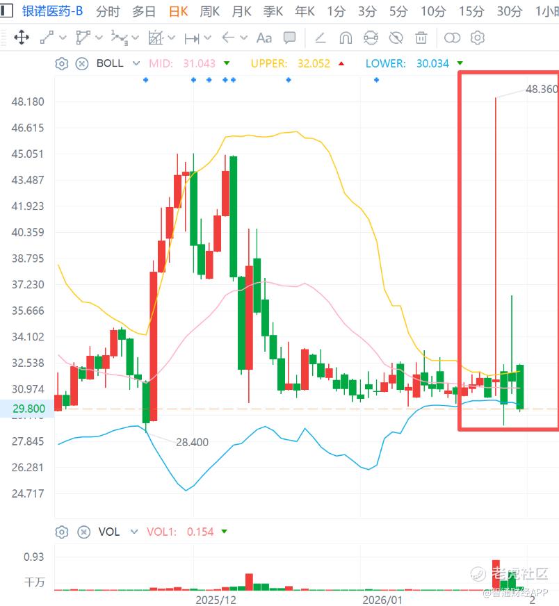 从前期盘面来看,在经历了入通前后的“过山车”行情后,银诺医药近期股价已从入通前高点44.98港元回落至30港元附近,BOLL线再次出现加速收窄,对应公司股价波动明显减小趋于企稳,并走出一段低位整理行情,而再次预示着变盘或将来临。