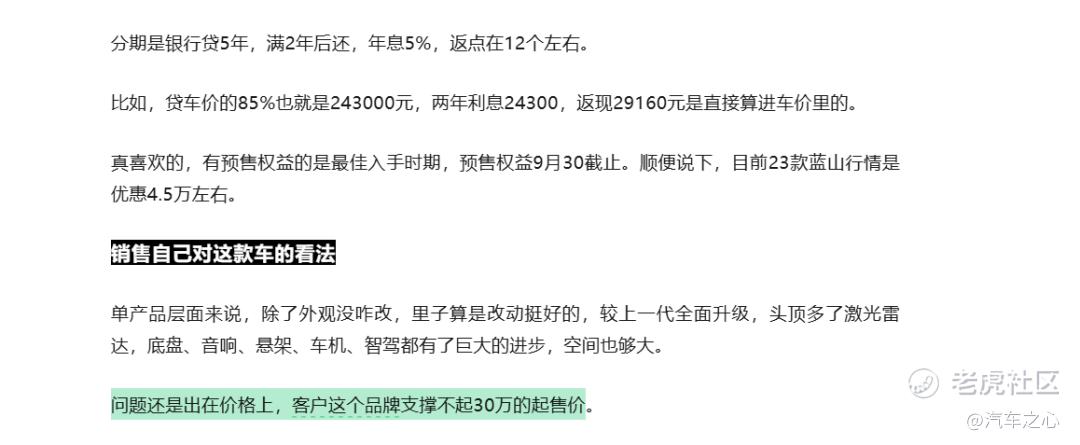 一线销售也有类似体会,一名蓝山销售在车fans平台袒露:“魏牌的智能化产品力充足,问题还是出在价格上,品牌支撑不起30万的起售价。”