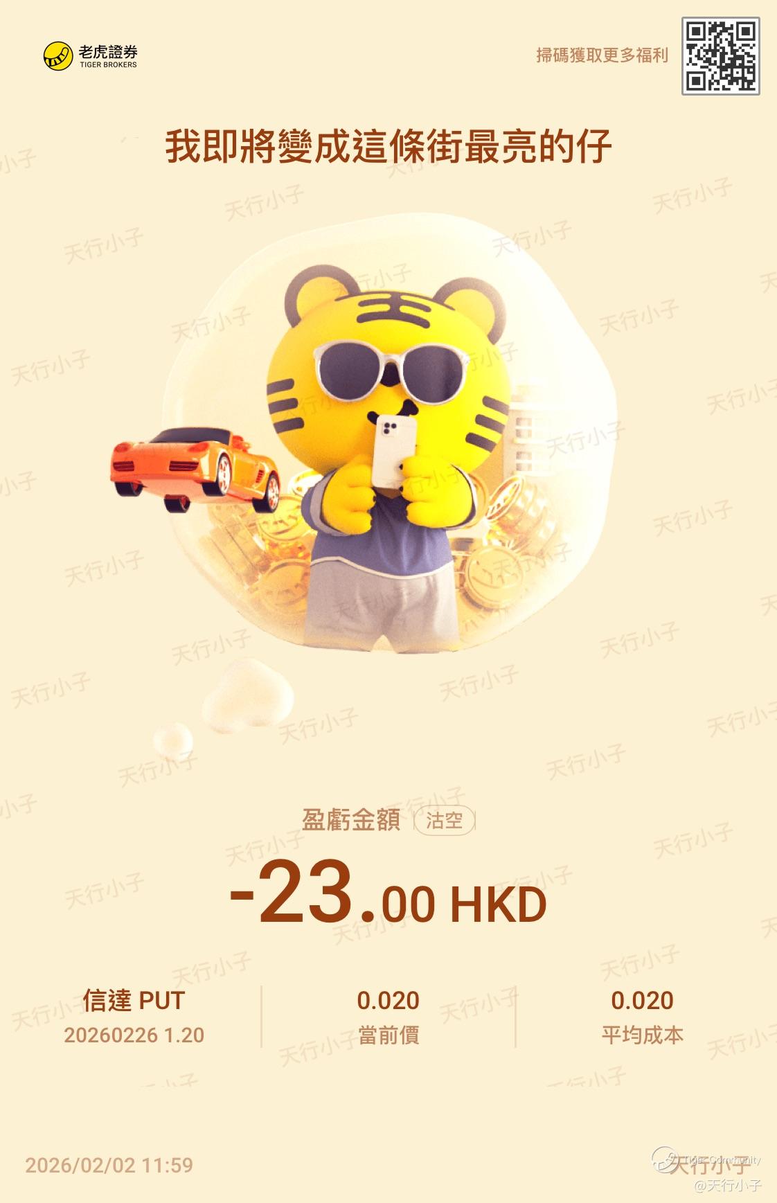 $CDA.HK 20260226 1.20 PUT$ $中国信达(01359)$ 政府有得分享,但系期权反而冇得直接分享,唯有用返传统方式骚扰大家,咁个月都系唔开1.25,1.2 算,开10张看一看世界情况,再加上农历新年假期,睇定啲再开
