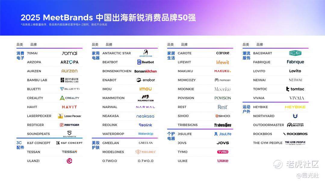 同样,《2025 MeetBrands中国出海新锐消费品牌榜单报告》中的50强品牌,无论来自哪个行业、瞄准哪个市场,都展现出一种共同特质——他们正在构建系统化的出海能力体系。