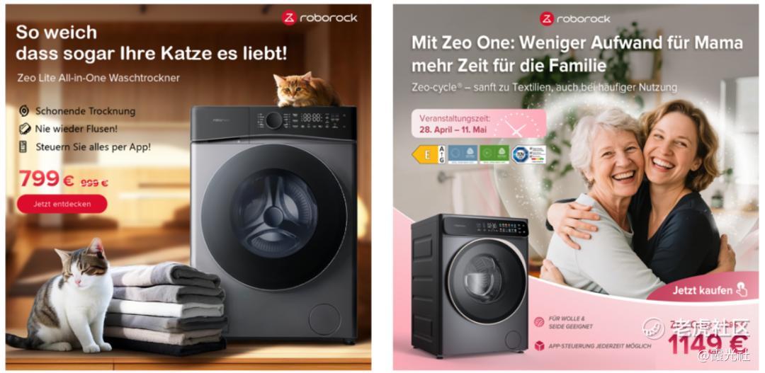 飞书点跃BeyondClick和石头科技一起,针对本土竞品与国际大牌在德国投放素材进行多维度分析,精准找到高效果素材的共性特征与石头洗衣机在素材上的差异机会点。数据显示,德国消费者对家电广告的独特偏好,比起华丽的科技展示,他们更看重产品的耐用性、节能效率和实际使用场景。