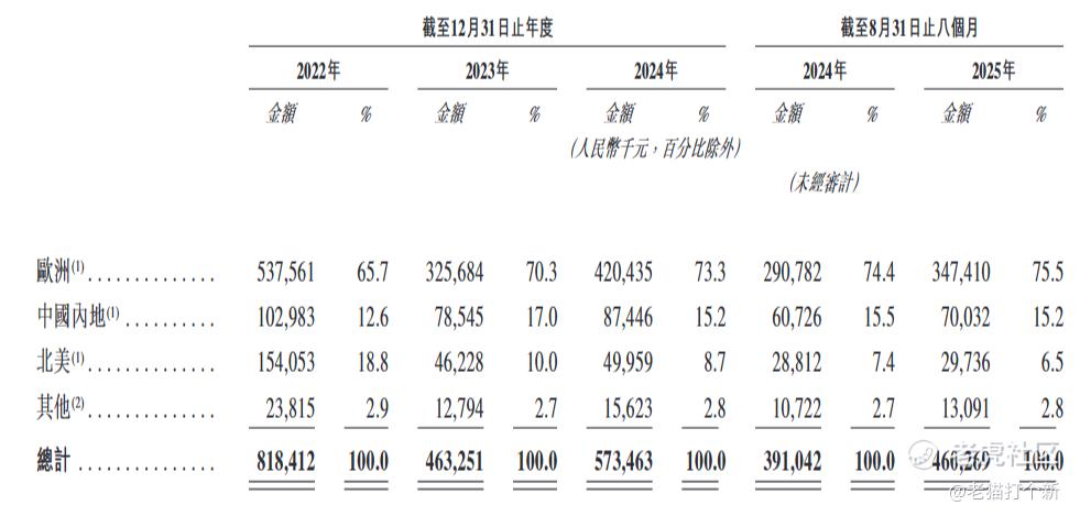 目前公司收入75%来自于欧洲市场,15%来自内地,剩下的来自北美和其他。
