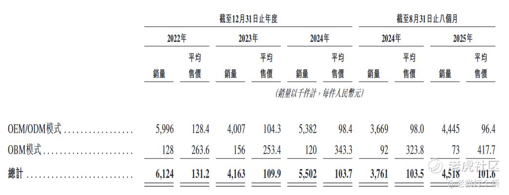 公司以OEM/ODM模式为主,在2017年成功收购英国知名鲤鱼钓品牌 Solar,切入高端OBM市场,但OBM整体占比仍只有不到10%(25年6.6%),从整体售价看,2022年至2025年持续下滑。