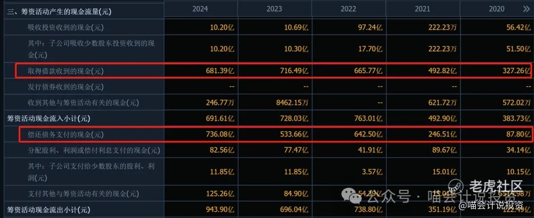 之前一直借多还少,2024年开始借少还多,2025年继续。