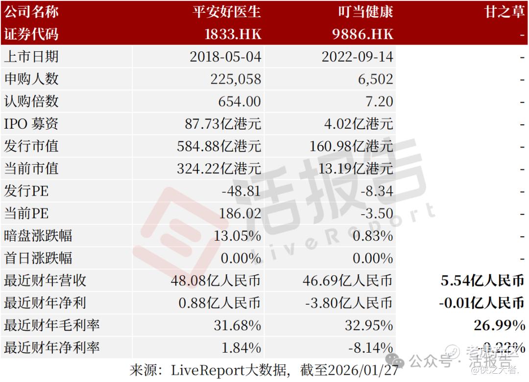 同行业IPO可比公司:平安好医生(1833.HK)、叮当健康(9886.HK)