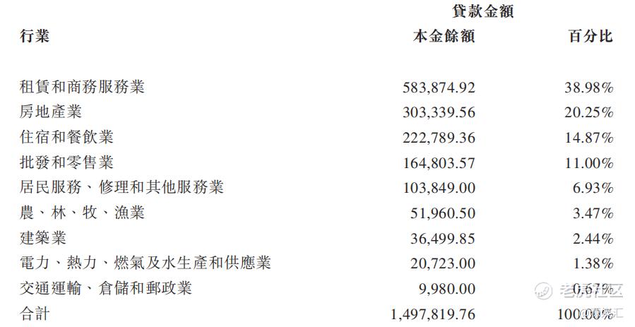 从资产质量看,上述149.78亿元贷款本金存在行业风险关联。其中,租赁和商务服务业约为58.39亿元,占比38.98%;房地产业约为30.33亿元,占比20.25%;住宿和餐饮业约为22.28亿元,占比14.87%;批发和零售业约为16.48亿元,占比11.00%。
