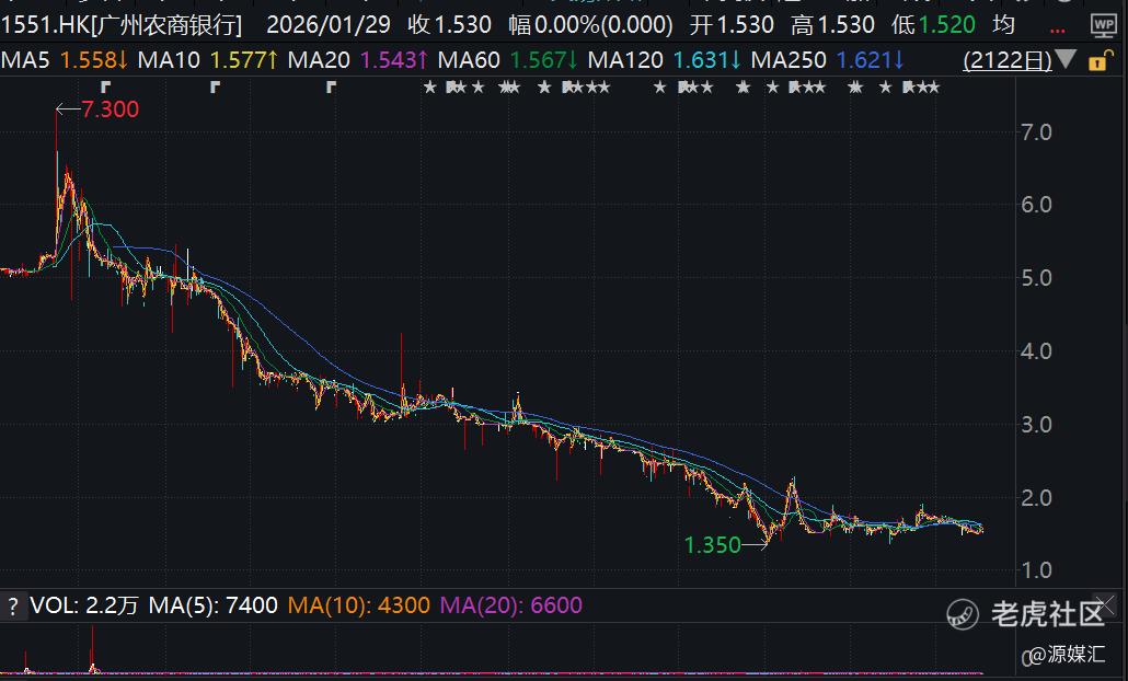 截至2026年1月29日收盘,广州农商行的股价为1.53港元,市值约为220亿港元,较2017年6月20日上市首日的490亿港元收盘市值蒸发了270亿港元左右,直接腰斩。