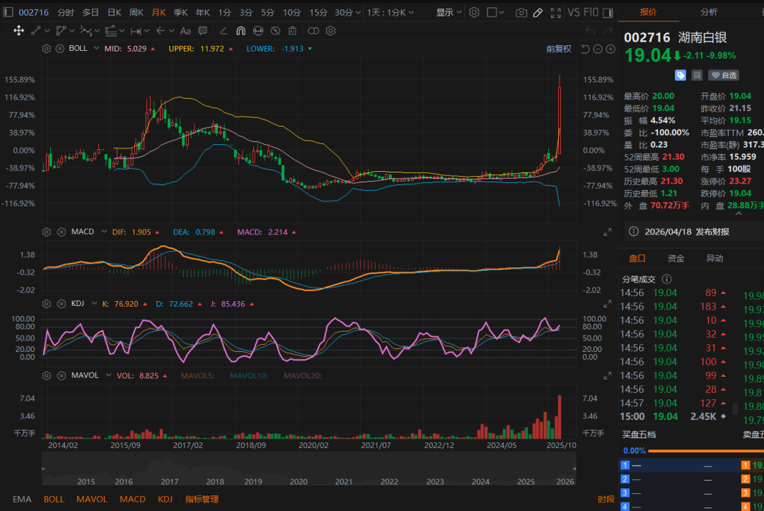 截至1月30日,湖南白银收盘价报19元/股,静态市盈率高达360倍,是同行平均水平的3倍。这家公司正在向市场发出最明确的撤退信号。