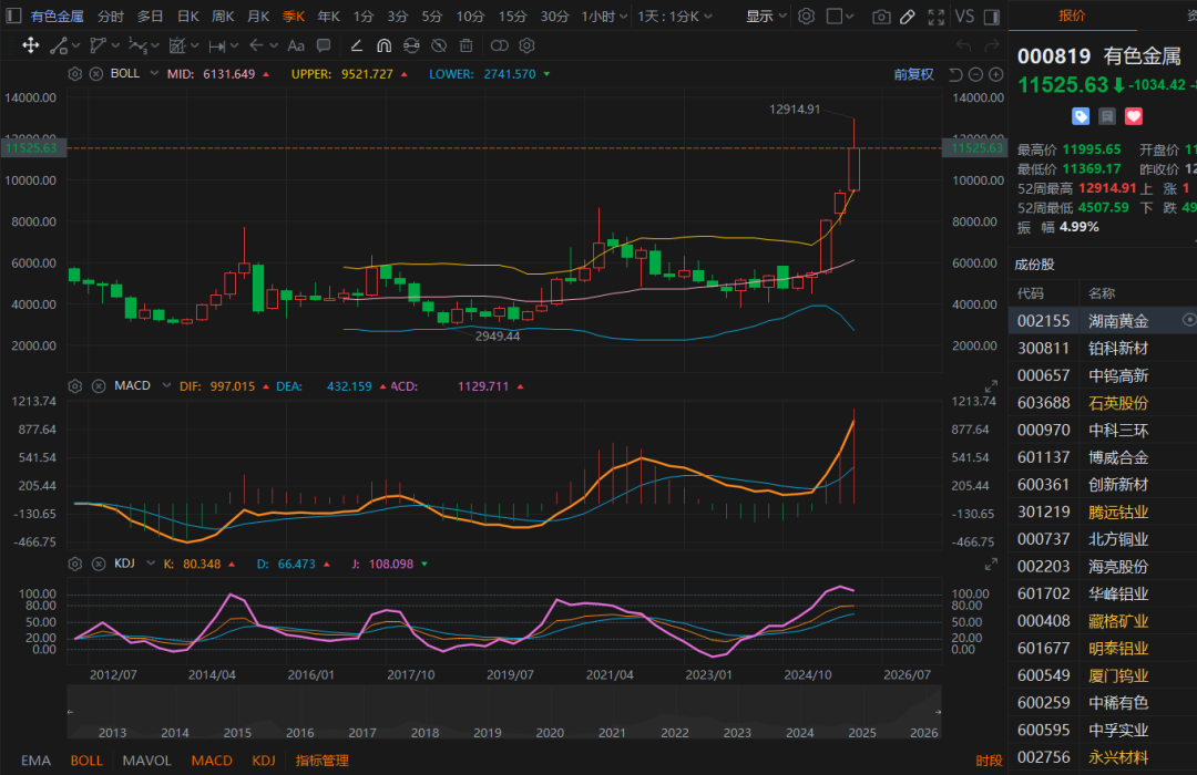 目前整个有色板块都已经在顶部,请切记追涨!会死得很惨!
