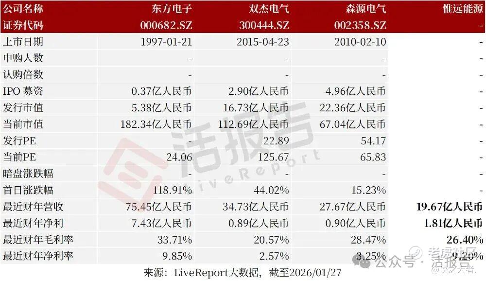2026年1月27日,惟远能源首次向港交所递交招股书,拟在香港主板上市,独家保荐人为中金公司。公司分拆自威胜控股(3393.HK),其于2005年在港上市,截至2026年1月28日的市值达240亿港元。