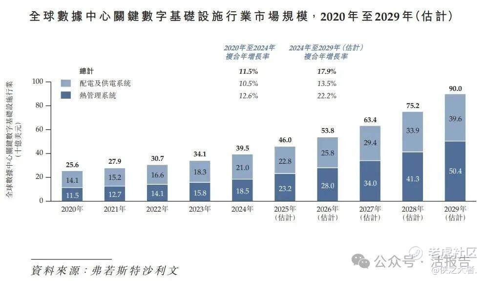 根据弗若斯特沙利文(Frost&Sullivan)的报告,全球数据中心关键数字基础设施行业的市场规模由2020年的约256亿美元增至2024年的约395亿美元,复合年增长率为11.5%。预计市场规模到2029年将达到约900亿美元,2024年至2029年的复合年增长率为17.9%。AIDC有望成为市场增长的核心驱动力,并占据增量需求的大部分,未来呈现加速发展趋势。
