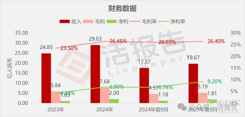 收入分别约为人民币24.85亿、29.03亿、17.57亿、19.67亿,2025年前9月同比+11.96%;