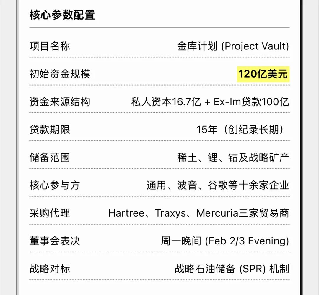 Project Vault的逻辑很清晰——既然短期内无法复制中国的矿产加工能力,那就先把货囤起来,为产业链重构争取时间窗口....