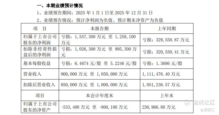 营收为90亿至105亿元,同比下降5.53%至19%;原本巨额亏损的净利润则再度出现倍数级扩大:预计归母净利润亏损125.81亿至155.7亿元,同比亏损翻了3.8倍至4.7倍。扣非归母净利润亏损99.53亿至102.63亿元,同比亏损翻了3倍多。