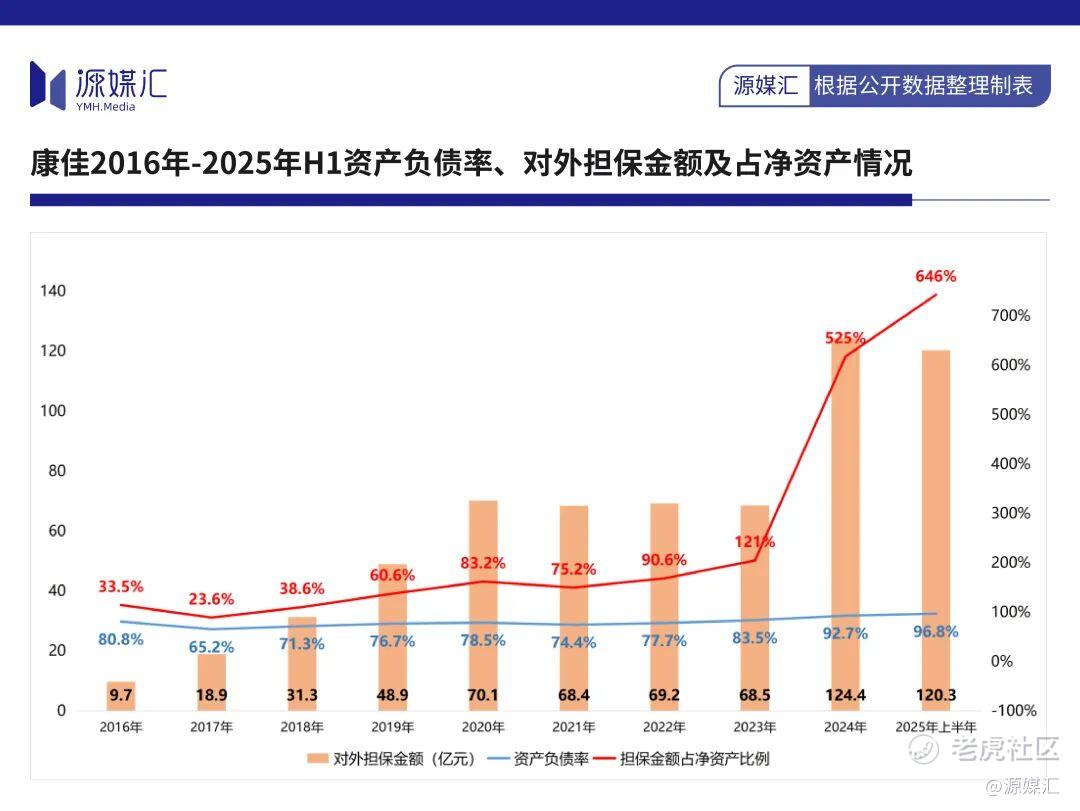 2017年,康佳对外担保金额为18.9亿元,占净资产比例为23.6%;但在2024年,担保金额升至124.4 亿元,占净资产比例为525%;到了2025年上半年,这一数字微降至120.3亿元,但占净资产比例高达646%。