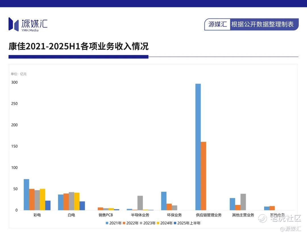 不过,当前华润对康佳的“救治”,更多是从盘活不良资产的底层逻辑层面出发。而康佳走上“产业+地产”经营模式之后,原本作为核心的家电业务已经逐渐掉队:彩电业务收入从2021年的73亿元下滑到2024年的50.3亿元,2025年上半年同比增长6%至22.45亿元,白电业务在40亿元上下波动。
