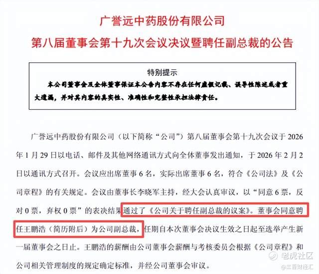 2月2日晚间,山西A股上市公司广誉远(600771.SH)发布公告,公司第八届董事会第十九次会议以全票通过决议,聘任王鹏浩为公司副总裁,任期至新一届董事会选举产生。
