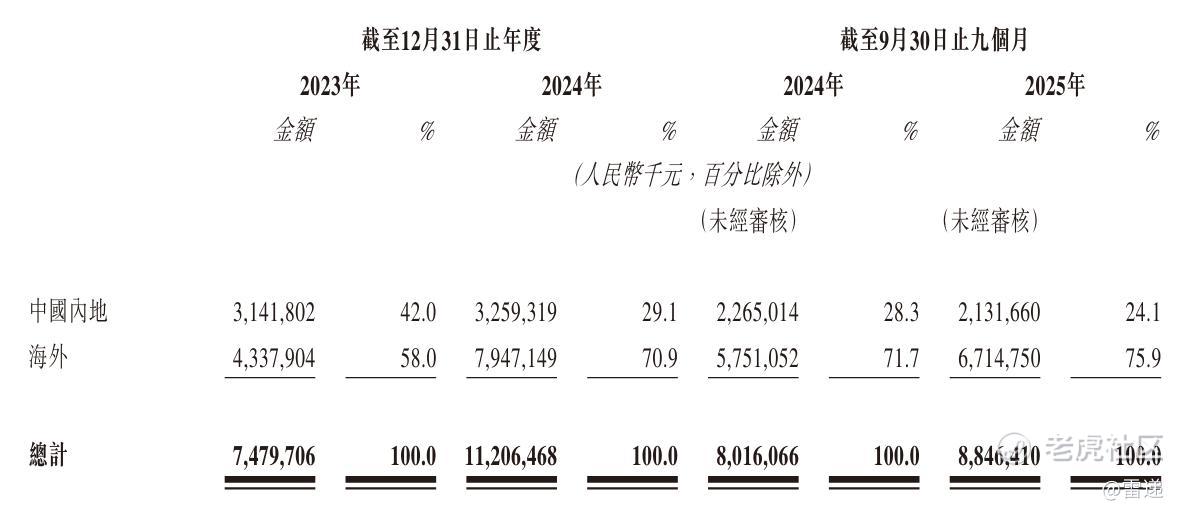 从收入区域来源来看,德业股份2025年前9个月来自中国内地的收入为21.32亿元,占比24.1%;来自海外的收入67.15亿,占比为75.9%。