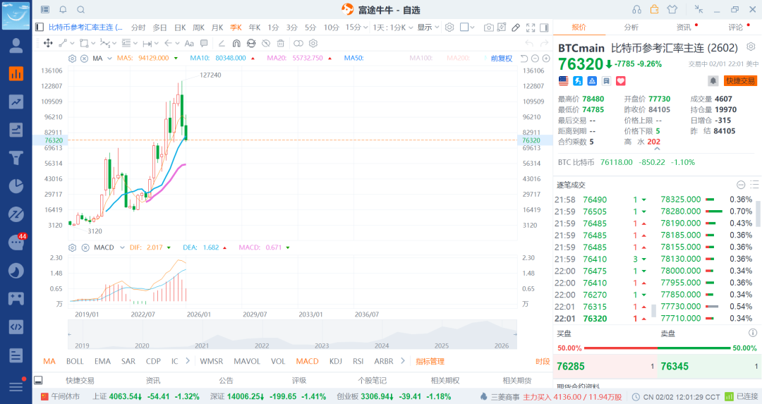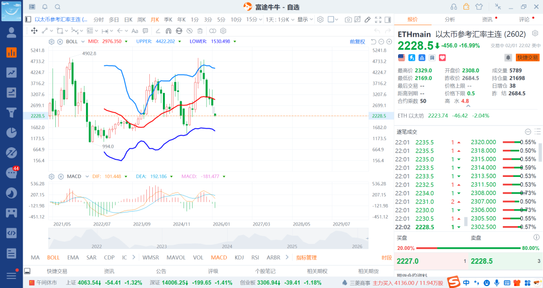 春节前持续各种资产走高,现在不少权益市场走跌了,还有就是贵金属带动有色跌,同时带崩了其他风险资产,也就是重塑美联储独立的低位,那么这个时候信用货币没有信任暂时停歇了,自然就是利空其他的资产了,现在数字货币也跌了,反而是机会的所在,低位逐步慢慢布局多那该多舒服,比特币和以太币基本接近30-50%跌幅了,继续低位持续买入到腰斩就差不多了,每次低位的时候别人割肉,那么就买进,别人高位疯狂要货你就出货给其他人继续了,最美逆风的你,才能赚的盆满钵满。