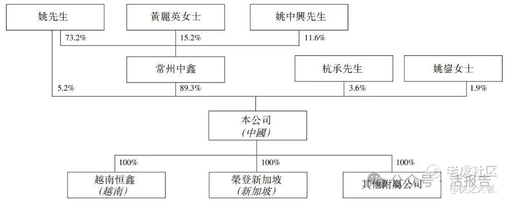 姚中兴先生、黄丽英女士夫妇,及其儿子姚勇先生,合计持股约94.43%;其他股东合计持股约5.57%。