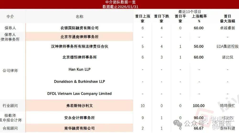 据**大数据统计,中鑫家居中介团队共10家,其中保荐人1家,近10家保荐项目数据表现普通;公司律师共计5家,综合项目数据表现有待加强。整体而言中介团队表现稳妥。