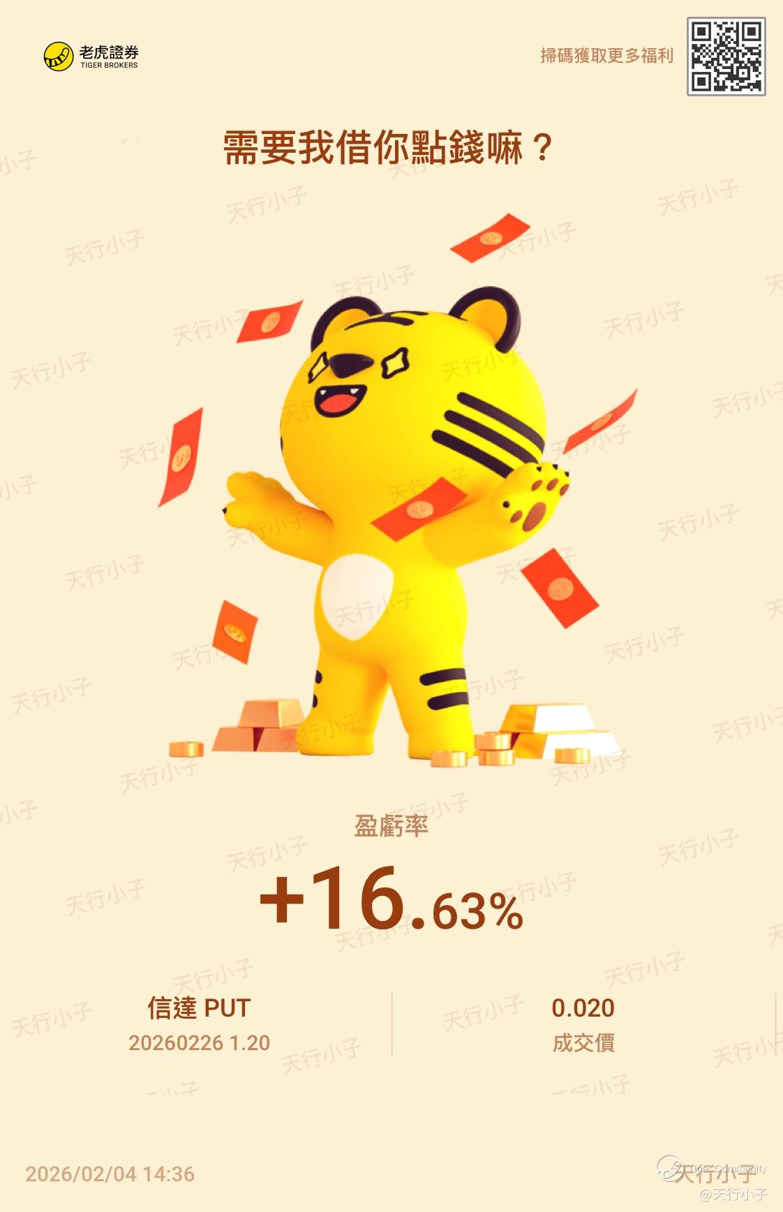 $CDA.HK 20260226 1.20 PUT$ 仲有一个月时间太长,而且仲有长假期,减咗一半仓,留多啲现金,之后再睇吓有冇机会