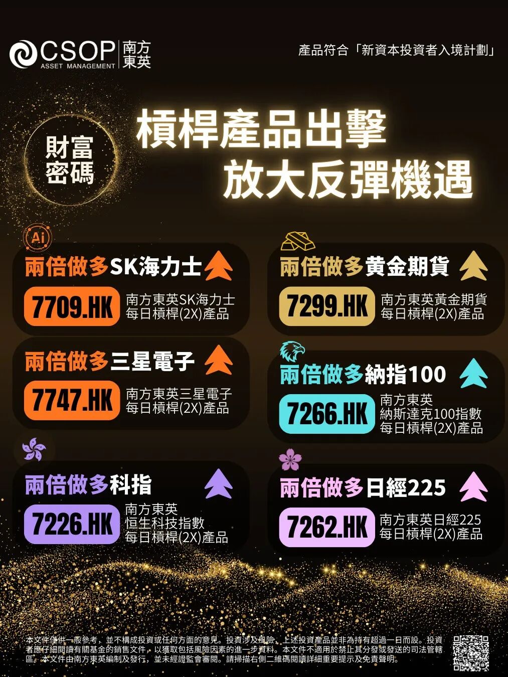 周一暴跌之后,全球多市场迎来强劲反弹。今日韩国股市大涨触发临停,日本股市高开,黄金现货更一度重回4800美元以上。想要积极捕捉环球机遇的投资者,关注南方东英两倍杠杆产品系列,放大市场反弹机遇。