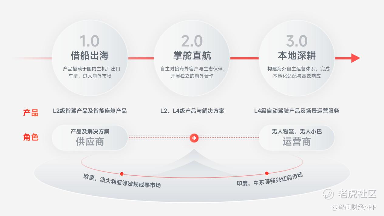 梳理下来,笔者认为佑驾创新的的出海战略可清晰划分为三个阶段:以“借船出海”为主题的1.0阶段,角色、技术与区域多维度全面进化的2.0“掌舵直航”阶段,以及未来极具想象力的3.0“本地深耕”阶段。