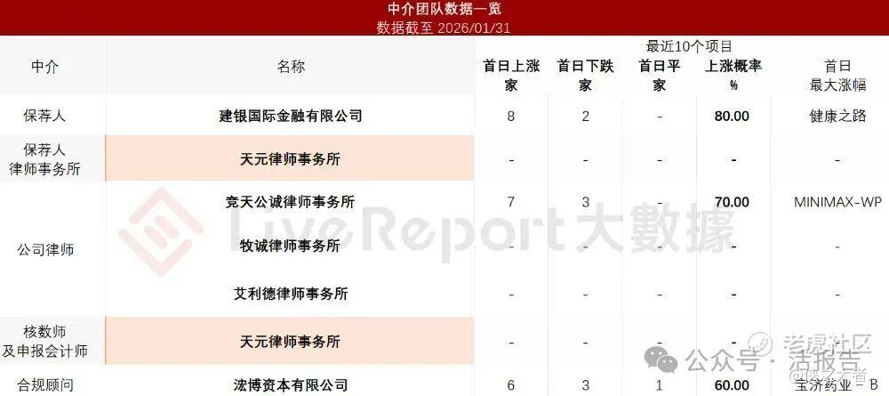 据**大数据统计,明智科技中介团队共计7家,其中保荐人1家,近10家保荐项目数据表现良好;公司律师共计3家,综合项目数据表现稳妥。整体而言中介团队历史数据表现尚可。