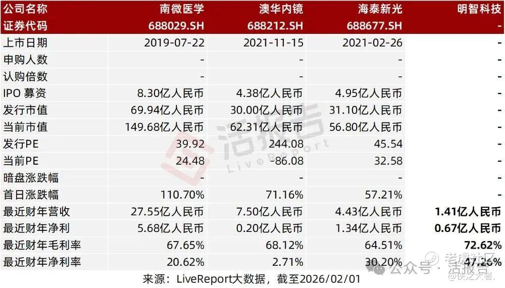 同行业IPO可比公司:南微医学、澳华内镜、海泰新光。